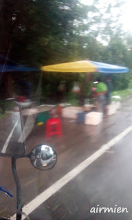 Selesai sahaja menghantar kelengkapan memasak di sekolah tersebut, kami singgah di sebuah kedai yang terletak berhampiran dengan lampu isyarat yang mana ianya akan kami gunakan untuk menuju ke lokasi pertama kami tadi. Hujan turun dengan lebatnya dan tidak berhenti-henti ketika ini. Makan Roti Tempayan berkuahkan Gulai Daging Kambing kami pada hari ini.